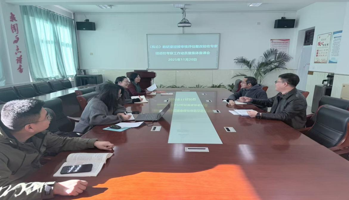 为迎接即将到来的本科教育教学审核评估整改验收专家进校考察工作,进一步统一思想、凝聚共识、提升教学质量,“毛泽东思想和中国特色社会主义理论体系概论”教研室于2025年11月20日在6409会议室召开了专项工作动员会暨集体备课会。会议由教研室主任主持,教研室全体教师参加。