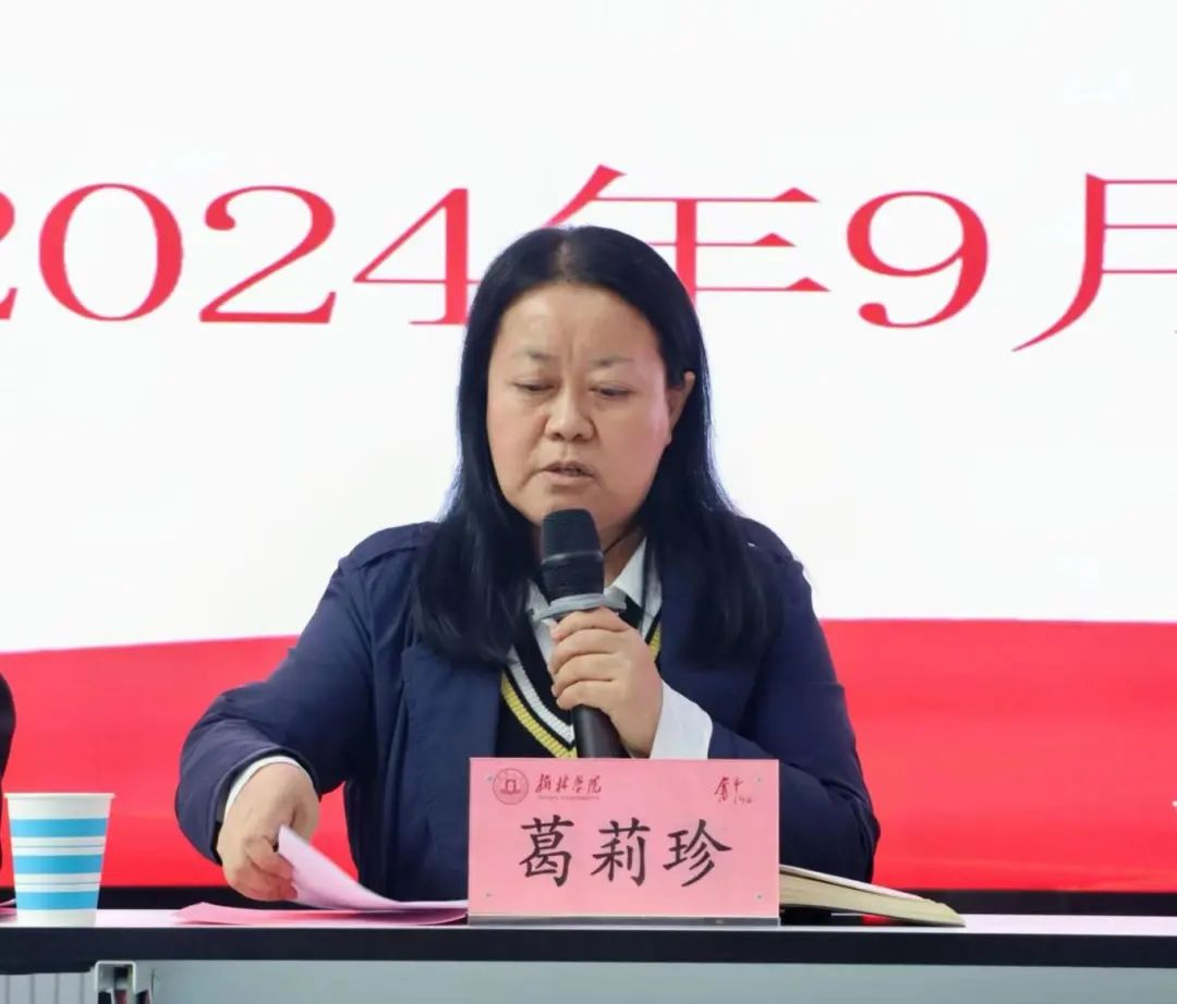 副书记李利霞介绍“五乐”育人工程推进情况,以立德树人为出发点,坚持德智体美劳全面发展,展示马院在育人方面的特色和成果。她也提出新生要熟悉学生手册,熟悉规章制度。