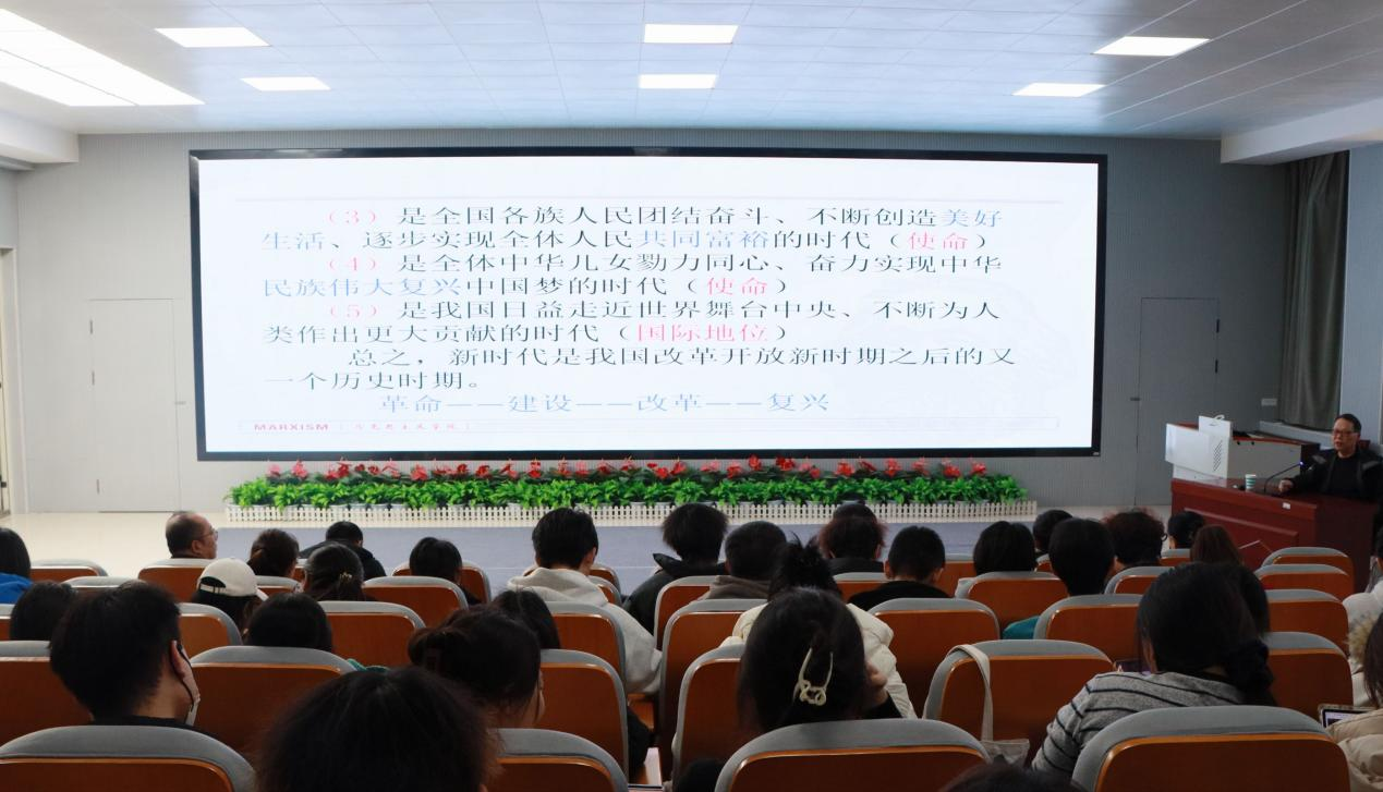 对学生而言,本次讲座则是一堂生动的“学术入门课”。阎树群教授的讲解帮助学生跳出碎片化认知,系统把握习近平新时代中国特色社会主义思想的内在逻辑与时代意义。在拓宽知识视野的同时,有效训练了学生的理论思维与分析能力,深化了对习近平新时代中国特色社会主义思想的理论地位与实践价值的理解,也为今后的专业学习与价值塑造奠定了坚实基础。