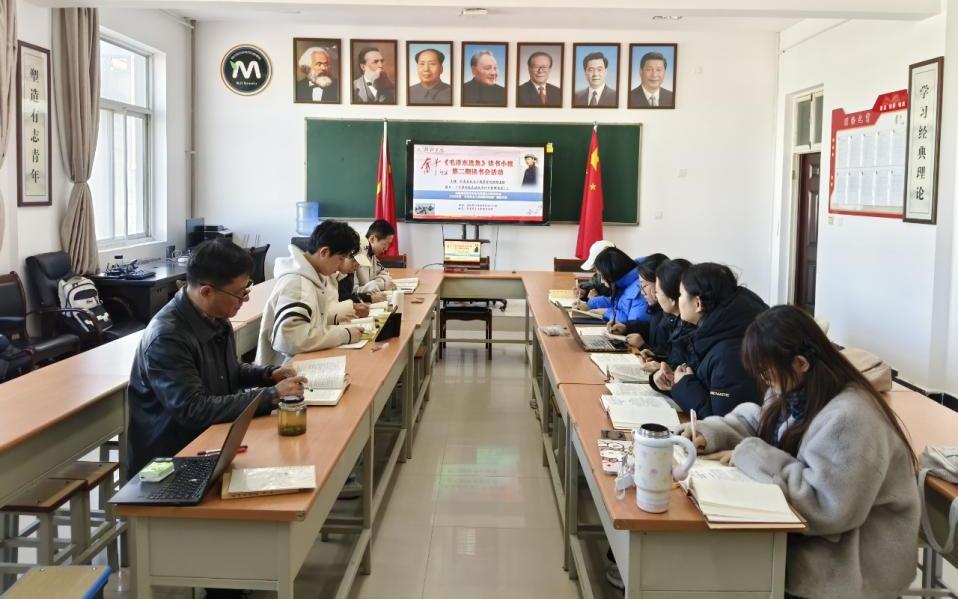 2025年11月21日上午,中国高等教育学会马克思主义研究分会2025年度“马克思主义经典著作研读”资助计划--榆林学院“奋斗”《毛泽东选集》读书小组成功举办第二期读书活动。本次读书篇目为《中国的红色政权为什么能够存在》。读书小组全员参加活动,组长赵奕臣主持读书会。