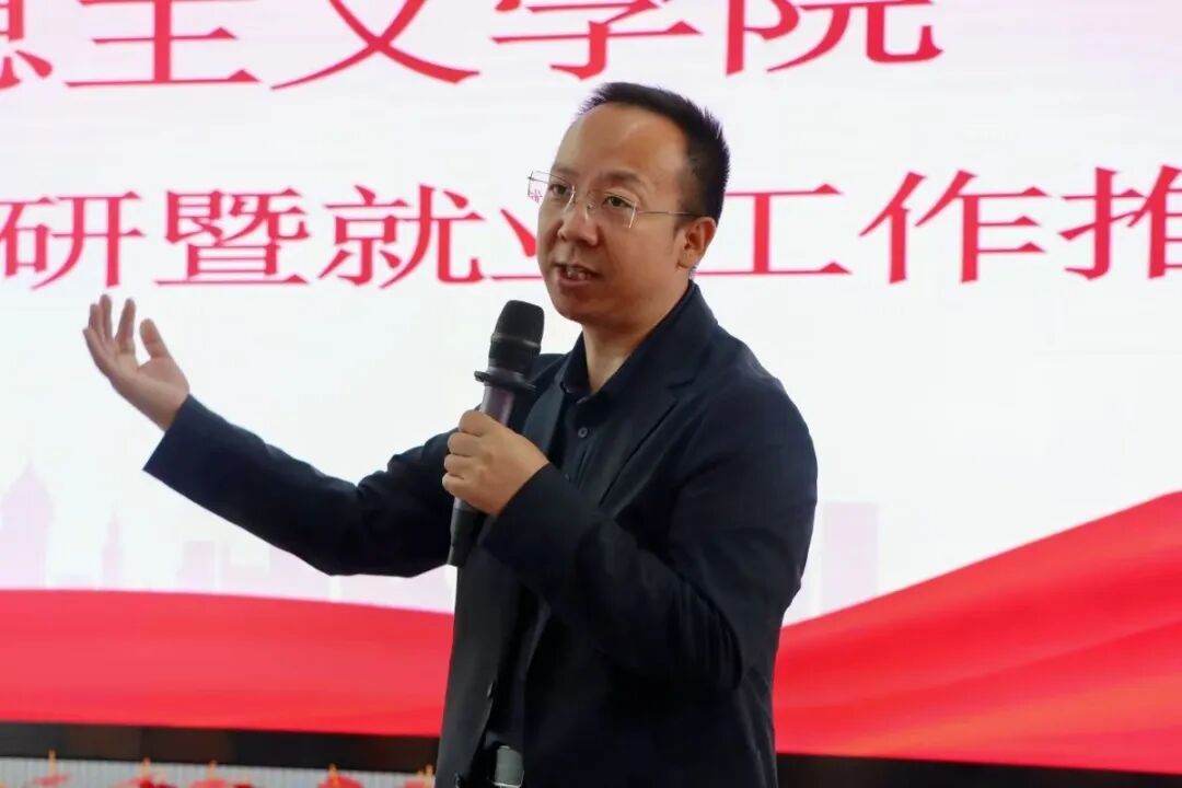 郭东敏进行了动员讲话。他结合当前高等教育发展与就业市场新态势,深刻阐述了考研深造与高质量就业对个人成长成才的重要意义。他指出,马院将竭力为同学们备战考研和求职就业提供全方位、全过程的支持与服务,希望同学们能明确目标、科学规划、坚定信心、积极行动,将所学知识转化为核心竞争力。