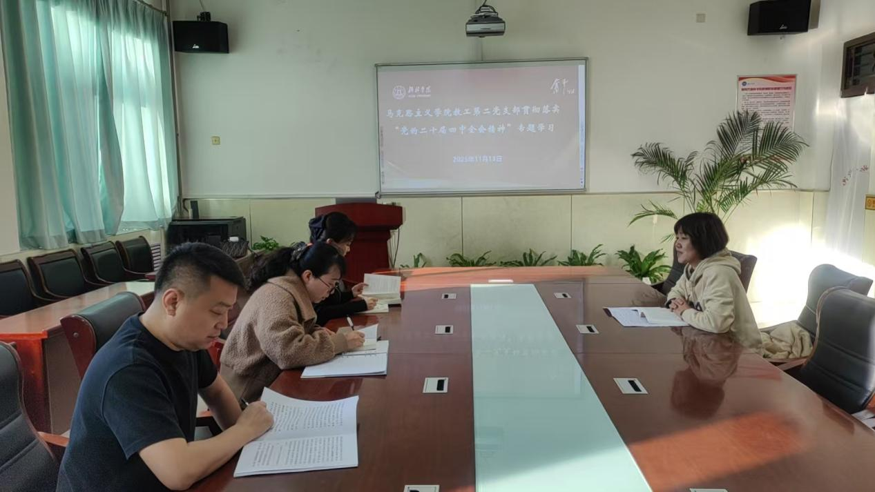 按照马克思主义学院党总支的安排部署,教工第二党支部于2025年11月13日上午在6406会议室召开“学习贯彻党的二十届四中全会精神”专题学习会,会议由支部书记李飒飒主持。