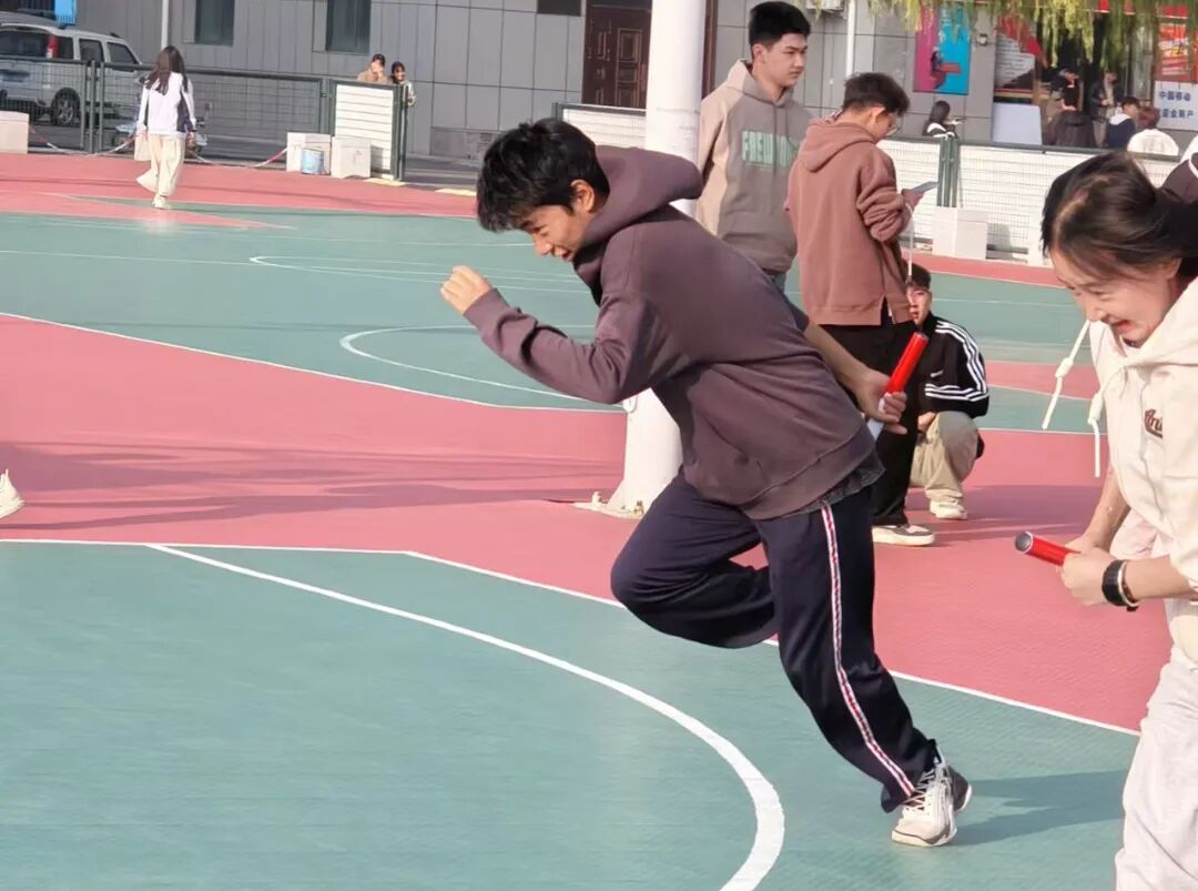 接力跑的赛场上,随着信号枪打响,同学们如离弦之箭,用接力棒传递速度与信任,每一次交接棒都扣人心弦,团队协作和个人能力于此刻交融,拼搏精神于此刻彰显;毛毛虫竞速和袋鼠跳趣味与竞技并存,参赛者们全身心投入其中,享受比赛过程;三人四足更是默契的考验、是信任的托付,随着比赛开始,同学们迅速进入状态,脚绑脚、肩并肩,喊着整齐的口号,迈着统一的步伐,齐心协力冲向终点,表现出高度的默契。