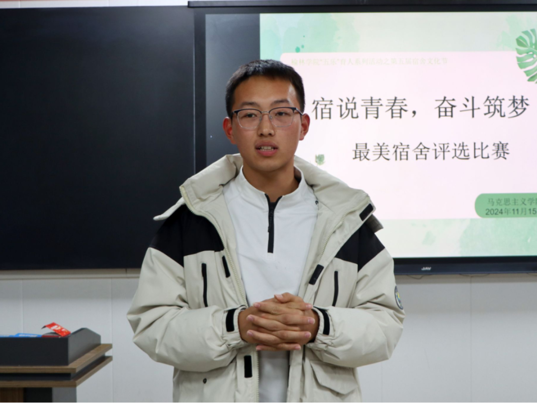 最后,评委们根据各参赛宿舍的表现进行了点评打分,高度肯定同学们的积极参与和精彩表现,并希望大家以此次活动为契机,继续坚持五育并举,努力营造良好的学习和生活环境。