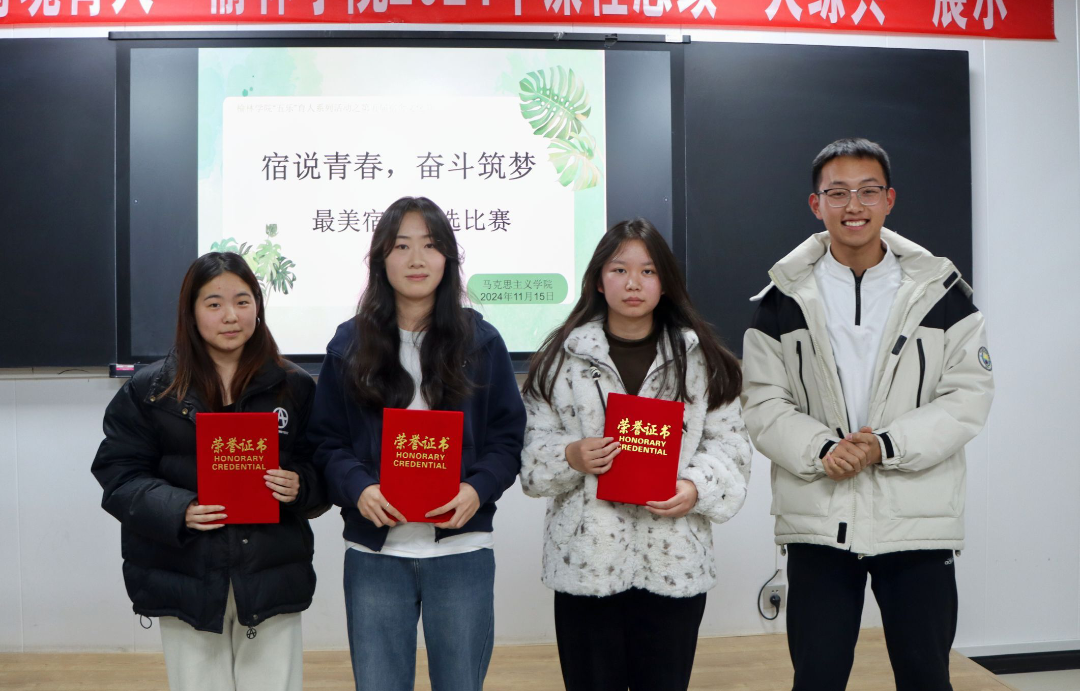为了进一步落实我校“五乐”育人工程,推动学生社区文化发展,营造温暖、礼让、友爱、和谐的宿舍环境,引导学生自我管理、自我服务、自我教育、自我监督,马克思主义学院于11月15日在6405教室举办了“‘宿’说青春,奋斗筑梦”最美宿舍评选活动。