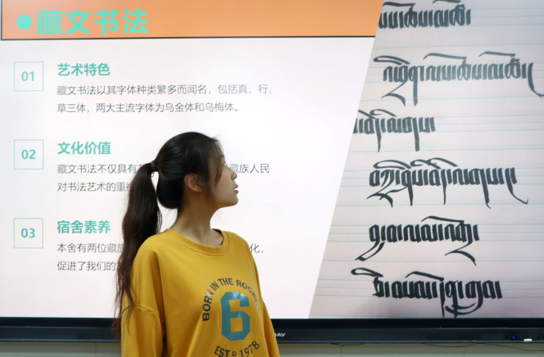其中,204宿舍采用视频展示的方式,形式新颖独特,生动展示了宿舍成员的日常生活和团结友爱的氛围;105(01)宿舍则巧妙地穿插民族特色,运用藏文展现民族融合与多元文化的创新与碰撞,为大家带来了别样的文化体验。