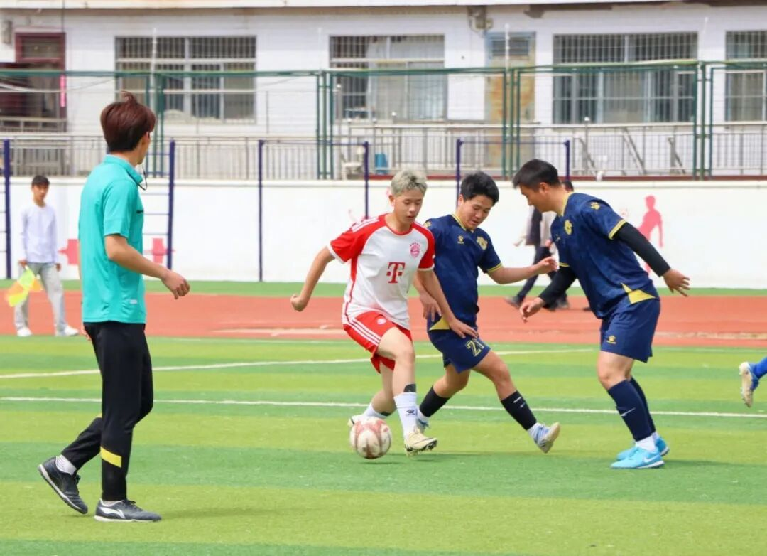 随着主裁判一声嘹亮的哨响,比赛正式拉开帷幕。双方球员迅速进入状态,在绿茵场上展开激烈角逐。传球、盘带、抢断、射门……队员们配合默契,动作干净利落,攻防转换间尽显青春活力。春风拂过球场,却吹不散队员们高涨的热情,他们用矫健的身姿和坚定的眼神诠释着对胜利的渴望。
