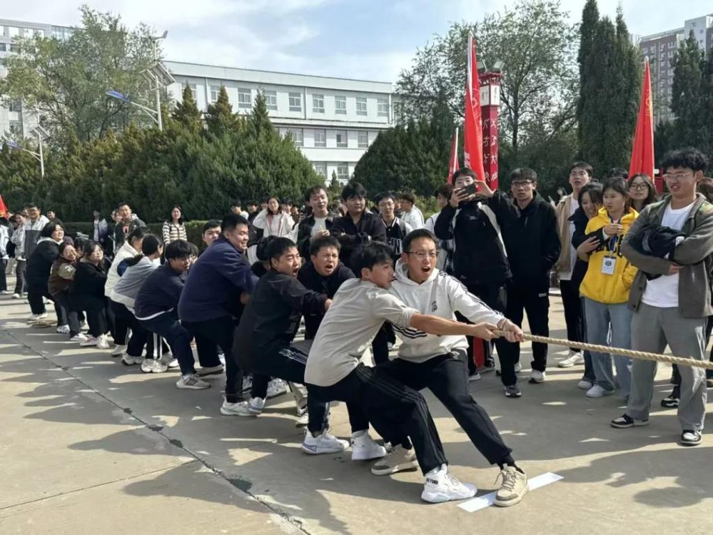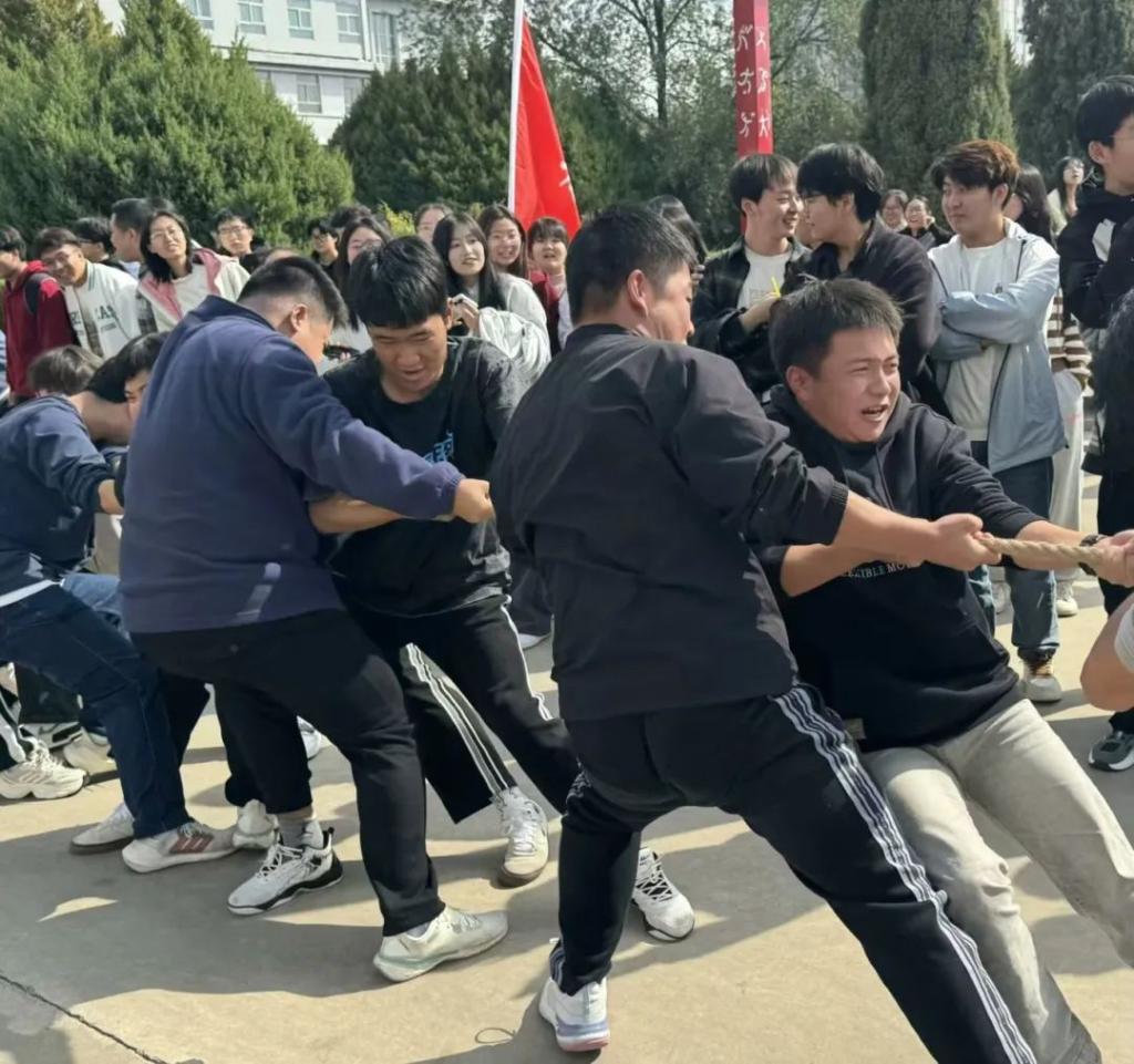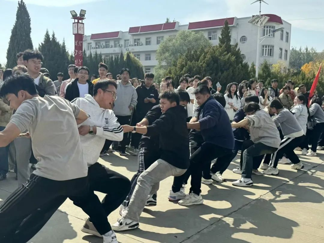 为庆祝中华人民共和国成立75周年,积极落实学校“五乐”育人工程,大力推动大学生阳光体育运动会开展,丰富同学们的校园文化生活,2024年10月14日我院在奋斗广场参加了拔河比赛。