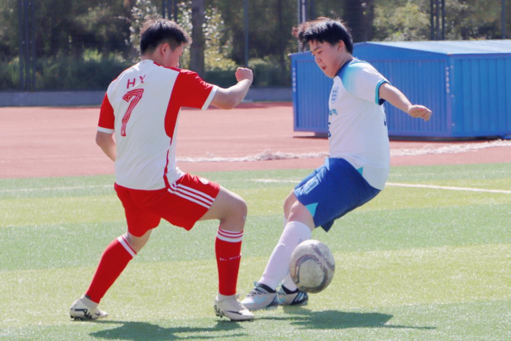 在比赛前的热身运动中,同学们所表现出的积极与雀跃就已经很好的坦露出他们内心对足球的热爱与执着。赛前,他们整装待发,跃跃欲试;赛中,球员们穿梭于绿茵之间,传球、射门,每一次精彩配合,都是智慧与技巧的完美结合,场边的欢呼,是对他们默契与才华的最高赞赏。